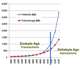 One question: Can you please explain the Growth Data Graph? I’m sure you included it to reinforce your point, but I’m afraid I don’t understand it. The curves are labeled “total info” and “total storage” — total info and total storage for what? Is it trying to imply a difference between transactions and interactions — or is it suggesting that we’re progressing to an age when transactions are supplanted by interactions?